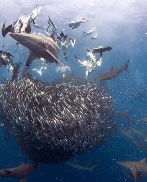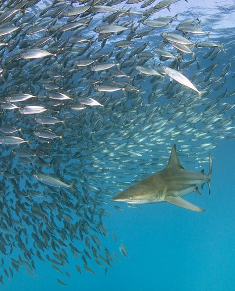Shark approaching school of Fish